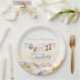 Round up your loved ones for an all around good time with this charming "A Little Cowboy is On The Way" baby shower theme! This beautifully designed paper plate captures the rustic charm of the Wild West, perfect for welcoming your little buckaroo. There is lasso clothesline fun hung with a denim sheriff baby bodysuit, cowboy boots, cowboy hat, and a bandana that doubles as a bib. A watercolor western canyon backdrop sets the scene on the front and back of the card. Its unique, watercolor style and playful details will add a special touch to your table decor as you welcome your new little cowboy.