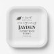 Celebrate a milestone moment with these charming graduation dessert plates featuring the phrase “A Sweet Ending to a New Beginning.” The words “A Sweet Ending” and “New Beginning” appear in elegant script, while the remaining text is set in classic Playfair for a timeless look. A tilted graduation cap adds a celebratory touch at the top, with personalization below for the graduate’s name, school, and class year. Perfect for graduation parties, dessert tables, and sweet treats shared in honor of a new chapter. The graduate cap design can be found on other items in my shop, Page Creative Designs.