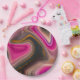 Plaques en papier avec un design abstrait super. Les couleurs rose et noire se mélangent et se mélangent dans un mouvement tourbillonnant. Saupoudrer de parties scintillant en faux or entre les couches.