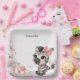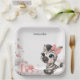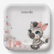 Cute baby shower or birthday paper plate featuring adorable little female zebra wearing a cute pink bow with some love hearts
