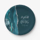Assiettes En Carton Agate Geode Script Dark Teal Silver Wedding