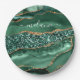 Assiettes En Carton Agate Vert Glitter Geode Marbre Nom Personnalisé