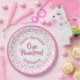 Assiettes En Carton Âge 100 Nombre éparpillé Motif rose/blanc