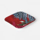 Aigle royal en vol avec un drapeau abstrait américain sur un fond en cuir rouge.