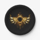 Ailes mécaniques brillantes, avec des engrenages et bannière ronde en laiton. Steampunk