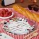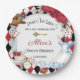 Personnalisez facilement et rapidement ces assiettes en papier fantaisistes pour la fête d'anniversaire d'Alice au pays des merveilles, il suffit d'appuyer sur le bouton Modifier à l'aide des outils de conception pour réorganiser et formater le style et l'emplacement du texte. (c) The Happy Cat Studio.