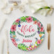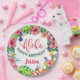 Plaques colorées en papier de fête d'anniversaire d'Aloha avec un Happy Watercolor Tropical Floral Theme avec hibiscus rose vif, feuilles de palmiers tropicaux et oiseaux exotiques. Parfait pour une fête d'été et pour créer une ambiance joyeuse. Vous pouvez modifier le texte à partir du menu Personnaliser. Des produits correspondants sont disponibles.