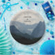 Plaques en papier mariage avec une photo de belles montagnes, ciel nuageux, et collines ondulées remplies d'arbres au premier plan. Couleur bleu gris.