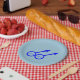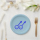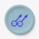 Cette étonnante assiette de fête en papier est conçue pour les hommes gais. Il comporte deux symboles mâles bleus côte à côte. L'arrière - plan est bleu et il y a du texte bleu personnalisable à l'intérieur de chacun des symboles pour mettre des noms.
