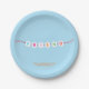 Bracelet d'amitié d'ami illustration Valentine's Day moderne amusant mignon plaques personnalisées de fête. Texte de fond orange entièrement personnalisable sur un arrière - plan bleu clair pour que vous puissiez le personnaliser et le rendre unique. ou le supprimer. Ces assiettes en papier de fête sont parfaites pour la célébration de la Saint-Valentin entre amis et amis à l’école de classe pour les fêtes d’enfants et d’amis. Vous pouvez personnaliser le texte et écrire votre propre message unique. Consultez le reste de la collection pour plus de coordination et de correspondance des éléments.