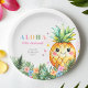 Tropical Pineapple Summer Aloha 1st Birthday Party Paper Plates présente un ananas à l'aquarelle souriant entouré de fleurs tropicales colorées et de feuilles de palmiers, avec des lettres lumineuses "ALOHA" en haut. Idéal pour un luau hawaïen, une journée de plage ou une fête en piscine d'été. Cette jolie plaque en papier donne le ton d'une fête amusante du 1er anniversaire pour votre petit. Faites-le le vôtre avec une personnalisation facile. Besoin d'une commande personnalisée ? Envoyez-nous un message, nous sommes là pour vous aider. Veuillez noter que les temps de réponse peuvent varier légèrement en raison de la différence de temps.