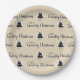 Assiettes En Carton Ancien Pays Rustique Noël Arbres Beige