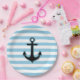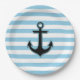 Assiettes En Carton Ancre Bleue, Ancre Bateau, Ancre Navire, Rayures