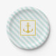 Assiettes En Carton Ancre dorée Pastel bleu marine