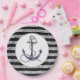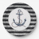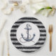 Assiettes En Carton Ancre nautique Mariage Silver Black Stripes
