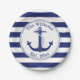 Assiettes En Carton Ancre nautique Marine Blue Stripes Nom de famille