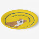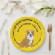 Faites une bonne fête avec ces plaques personnalisées. Ils sont parfaits pour les fêtes d'anniversaire ou autres célébrations en l'honneur d'amoureux de les chiens de tous âges. Elles présentent une illustration réaliste d'un bulldog anglais dans le marron clair et blanc contre un arrière - plan jaune vif. Le lettrage bleu marine épelle votre message personnalisé.