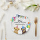 dessin original de Komila Y. Cute bear and lion cub wild party animal illustration plaques de papier d'anniversaire. Personnalisable