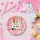 Un dessin mignon dessiné à la main d'animaux de la fête des animaux de la ferme comprenant des illustrations d'une chèvre, d'une oie, d'un hamster, d'un lama, d'un cochon, d'un poussin, d'une vache et d'un lapin. Un beau design sur le thème des animaux de la ferme idéal pour les fêtes d'anniversaire des enfants sur le thème des animaux de la ferme. Personnalisez cette assiette en papier d'anniversaire des animaux de la ferme et faites-en votre propre !