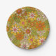 Assiettes En Carton Années 1960, 1970 Vert & Orange Retro Floral