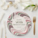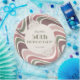 Fleur rétro avec cadre rond sur la sauge, brune et pêche lignes ondulées arrière - plan plaque de papier d'anniversaire. Un service de massage en chambre est proposé sur demande.