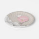 La fête d'anniversaire plaque comporter une illustration d'un ballon à air chaud rose flottant dans les nuages. Personnalisez le nom et l'âge.