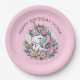 Assiettes En Carton Anniversaire de la fille Pink Unicorn personnalisé