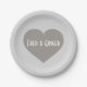 Cette plaque en papier présente un coeur argenté en forme de solide, recouvert de texte modèle, pour les noms de la mariée et du marié célébrant 25 ans de mariage. Personnalisez le style de police, la couleur et la taille. Grand cadeau anniversaire en argent ou mariage ou anniversaire de la vaisselle.