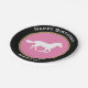 Silhouette de cheval blanc sur le joyeux anniversaire rose avec la plaque à papier nommée. Personnalisez-vous la plaque à papier en introduisant votre nom dans la zone de texte. Le "joyeux anniversaire" peut également être changé pour d'autres occasions.