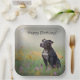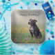 Ces plaques de papier d'anniversaire présentent un beau Pitbull noir et blanc contre un arrière - plan atmosphérique.