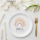 Assiettes En Carton Anniversaire élégant Boho rose et or arc-en-ciel