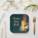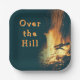 Assiettes en papier Au-Delà de la Colline avec un motif de feu qui brûle. Parfait pour une célébration d'anniversaire en plein air autour du feu. Personnalisez le texte avec son nom, son âge, ou utilisez "au-delà de la colline". Couleur foncée avec texte orange à côté d'une image de feu de joie. Choisissez des assiettes rondes ou carrées en deux tailles.