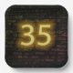 Panneau de néon en brique foncée sur un mur en brique pour 35e anniversaire.