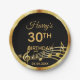 Arrière - plan noir moderne et élégant avec des notes de musique faux or pour une fête de 30ème anniversaire. Modèles pour l'âge de 30 ans et nom. Le nom est écrit dans un script de style écrit à la main. Lettres d'or et nombre. Pour lui et elle.