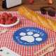 Ces plaques à papier montrent un empreinte de patte blanc sur un arrière - plan bleu avec le texte de votre choix. Elles sont grandes pour l'empreinte de patte orienté, le chien orienté, le chat orienté, ou les fêtes d'anniversaire orientées animales.