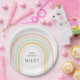 Design moderne arc-en-ciel, soleil et nuages dans les couleurs pastel par Shelby Allison. Personnalisez cet autocollant avec vos détails et votre photo.