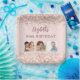 Pour une fête d'anniversaire de 50ème anniversaire (ou de n'importe quel âge). Un arrière - plan rose à dégradé d'or décoré de confettis. Le texte : Le nom est écrit en or rose foncé avec un grand script de style à la main moderne. Personnalisez et ajoutez le nom, âge 50 et 3 de vos propres photos de la fille d'anniversaire, sa famille, des amis ou des animaux de compagnie.
