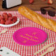 Plaques de papier peint couleur rose et jaune d'anniversaire. Parfait pour ceux qui ne veulent pas laver beaucoup de vaisselle !