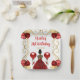 Cette invitation à la plaque d'anniversaire comporte un cadre doré élégant, une belle princesse à la peau foncée et une robe rouge, des fleurs et un ballon. C'est parfait pour une fête d'anniversaire.