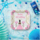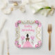 Cette invitation à l'assiette d'anniversaire comprend un cadre doré élégant, une belle princesse à la peau foncée et une robe rose, des fleurs et un ballon. C'est parfait pour une fête d'anniversaire.