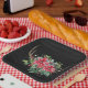 Lumières brillantes avec houx, baies et poinsettia rouge bouquet de Noël sur les bois de cerfs. L'arrière - plan est en bois noir rustique. Arrière - plan peut être modifié.