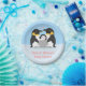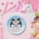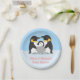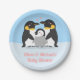 Plaques à papier de baby shower avec l'illustration d'une famille heureuse de pingouin avec le peu une dans l'étreinte de ses parents. Grand pour un baby shower orienté de pingouin !