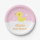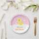 La partie assure comporter un mignon en caoutchouc jaune mignon pour cette prochaine partie de baby shower. Un bon nombre de bulles de douche et de tuiles roses douces d'une salle de bains murent l'arrière - plan. Doux et adorable ! Personnalisez facilement avec votre message de partie.