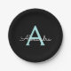 Assiettes En Carton Aqua Teal Blue Script Girly Monogram
