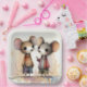 Deux souris adorables se tiennent côte à côte, habillées de costumes charmants et colorés aux grands yeux expressifs