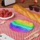 Assiettes En Carton Aquarelle Abstraite Peint Rayures arc-en-ciel