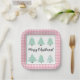 Cette adorable plaque en papier carré de Noël présente un assortiment de fantaisistes, pastel de Noël sur un arrière - plan rose plaid et dit "Joyeux Noël" (ou personnalisez à un nom ou une expression différente).