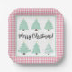 Assiettes En Carton Aquarelle Arbres de Noël avec Carré rose