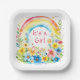 Assiettes En Carton Aquarelle Arc-en-ciel et fleurs C'est une fille