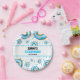 Assiettes En Carton Aquarelle Bleu et Blanc Cute Garçon Donut Annivers